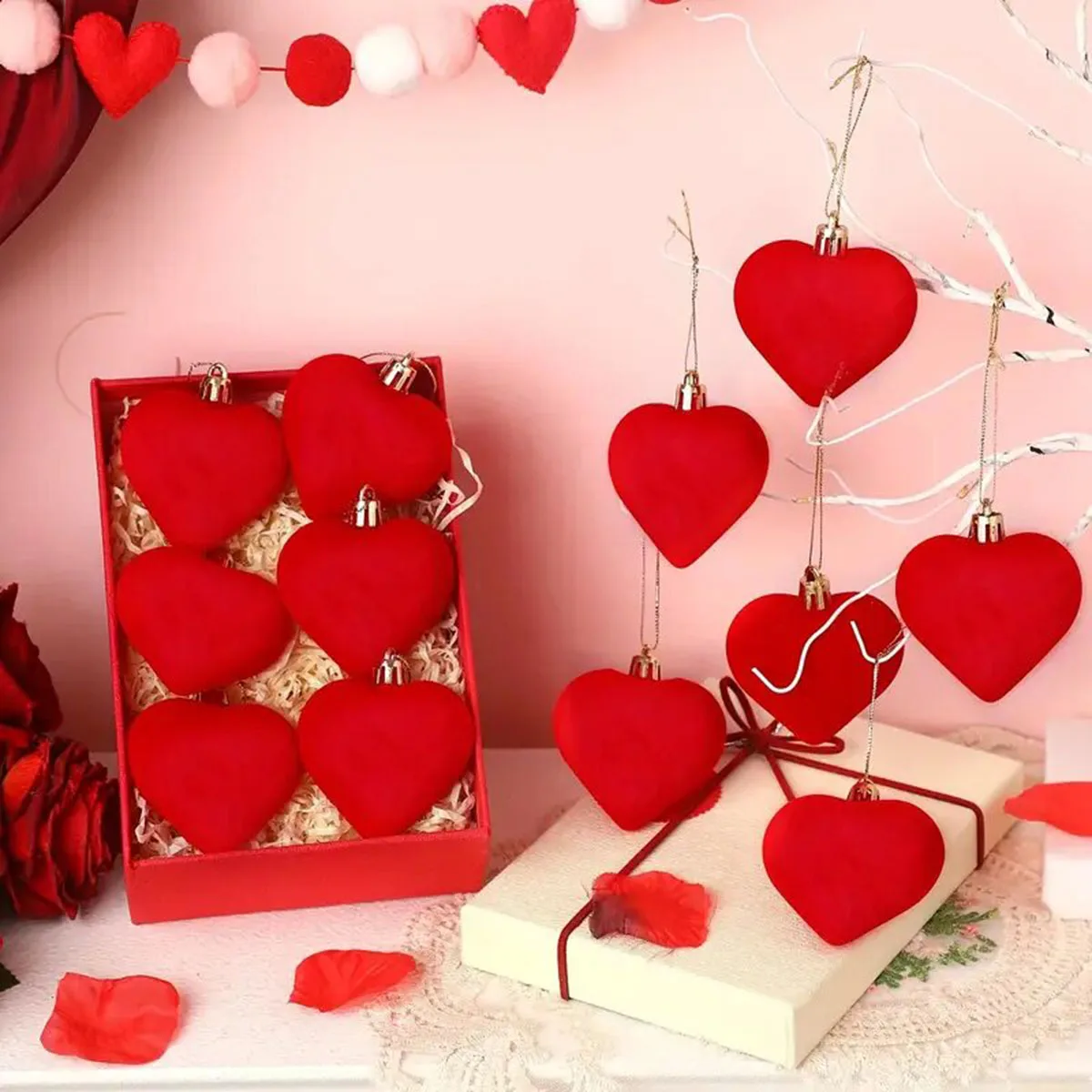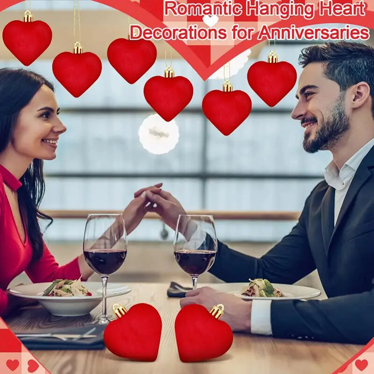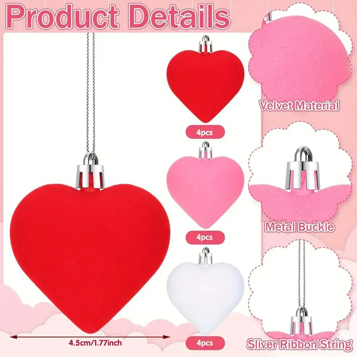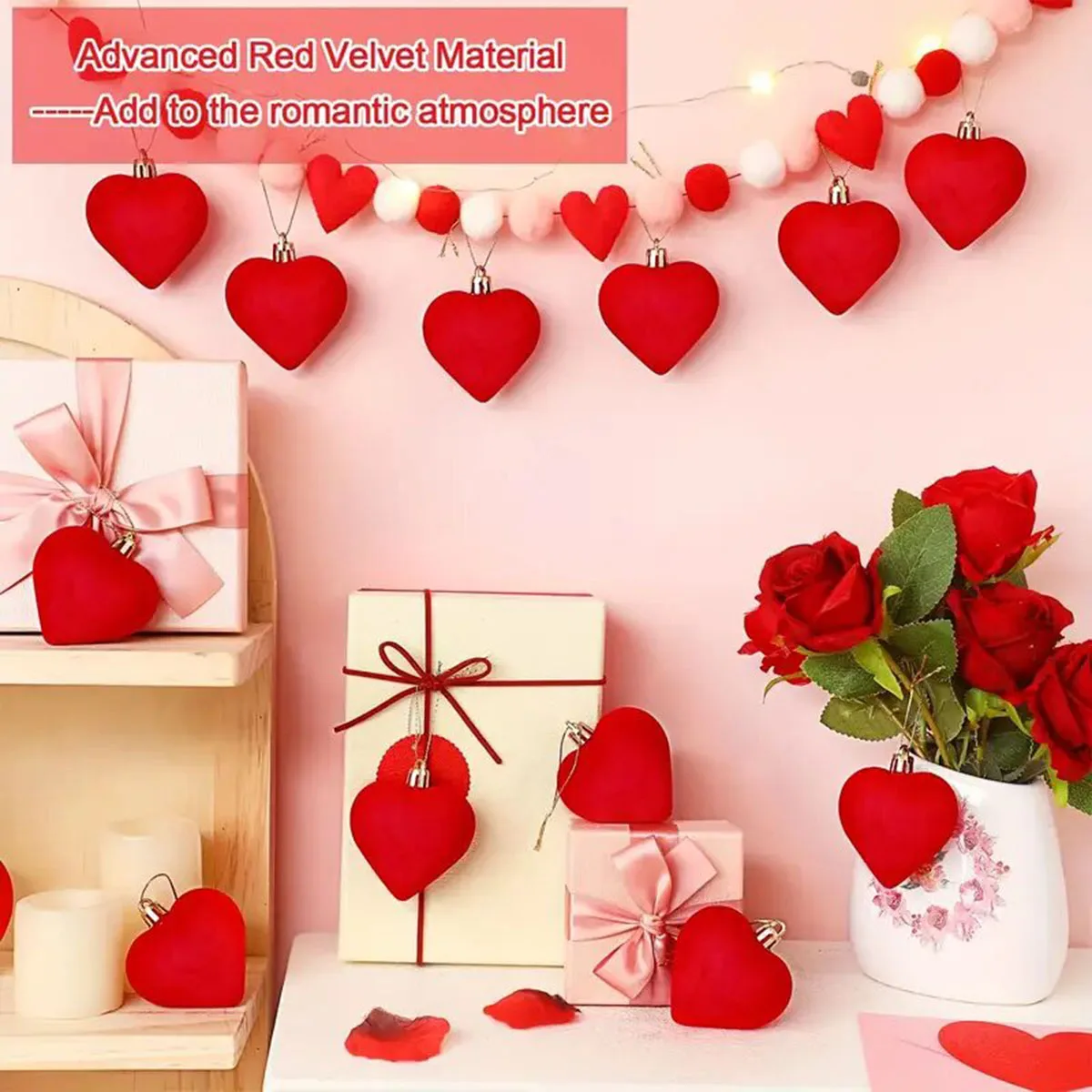 12 velvet heart-shaped hanging decorations, suitable for Valentine's Day tree decoration and wedding anniversary celebrations