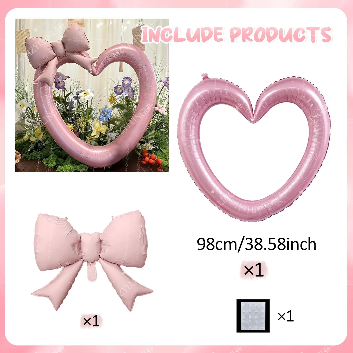 Pink hollow heart-shaped aluminum foil balloons and bow balloons, used for birthday parties, Valentine's Day, shower decorations