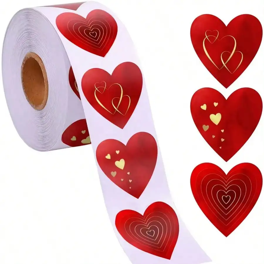 Valentines Red Heart Stickers, Heart Decorative Labels 500 per Roll, Valentine's Day Love Decorations for Wedding, Anniversaries